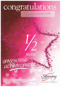 Well, first of all, I got my first half stone (7lb) certificate from Slimming World on Thursday. This has been a long time coming despite actually losing 12lb in real life.